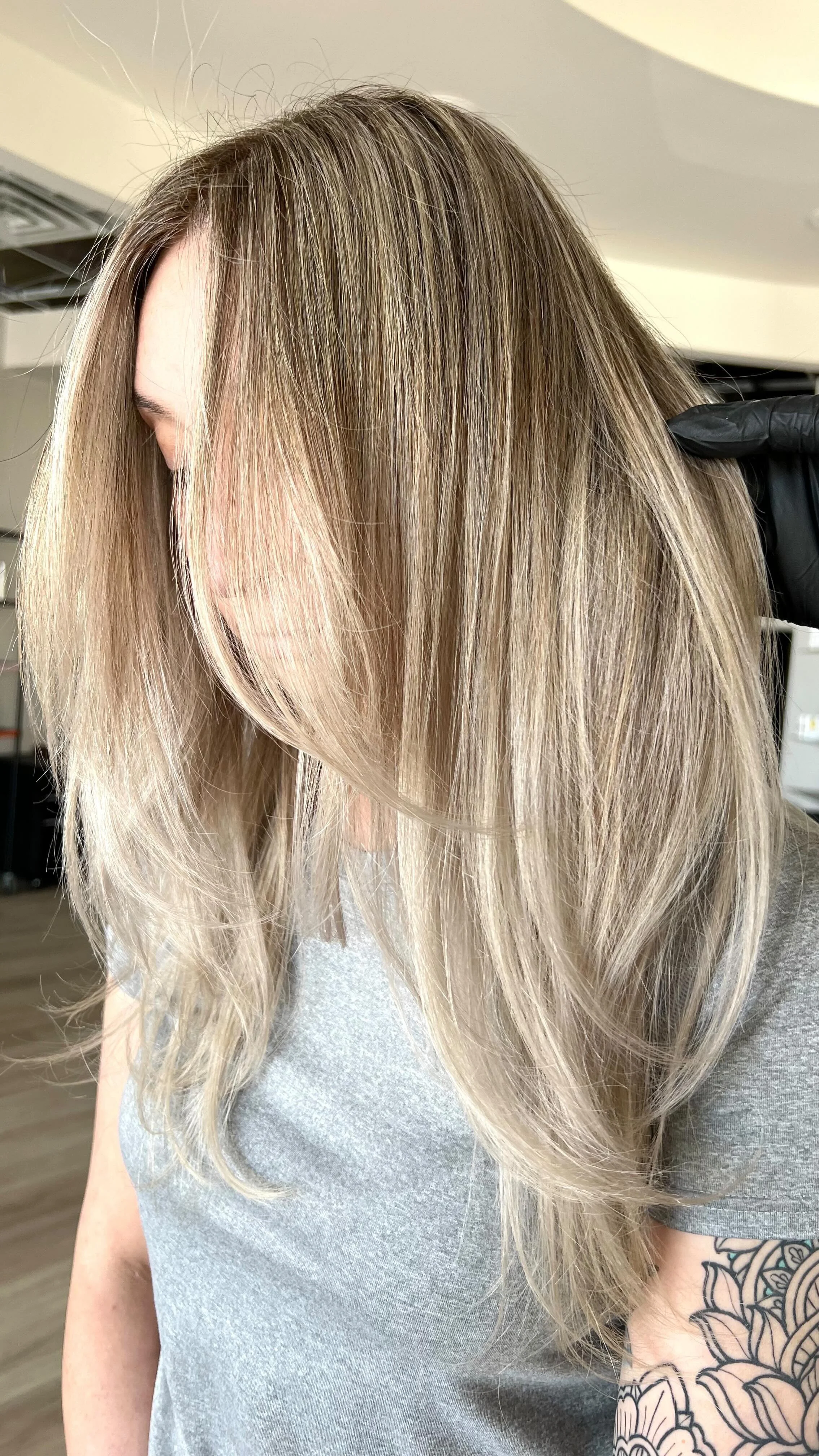 A subtle highlighting method that amplifies your natural color. Less foiling than a traditional highlight but strategically placed color for that POP!